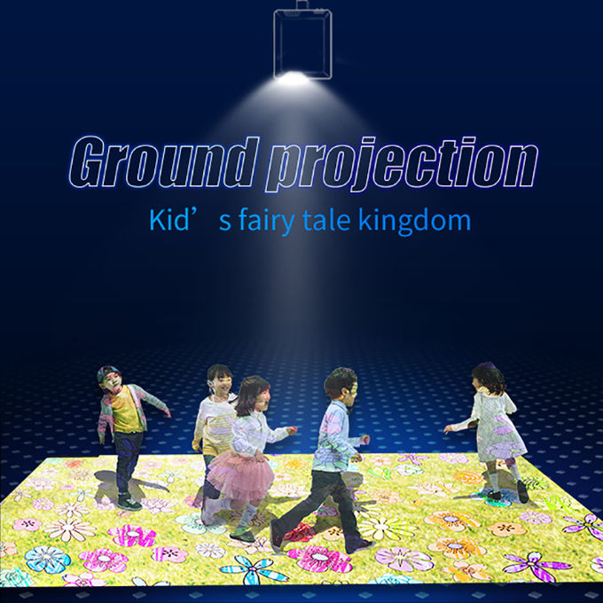 The ground interactive projection system uses a projection device hung on the top to project the image effect onto the ground. When people walk to the projection area, through system recognition, they can directly interact with the virtual scene on the projection screen using their feet or actions. The interactive effect will change accordingly with people's footsteps.